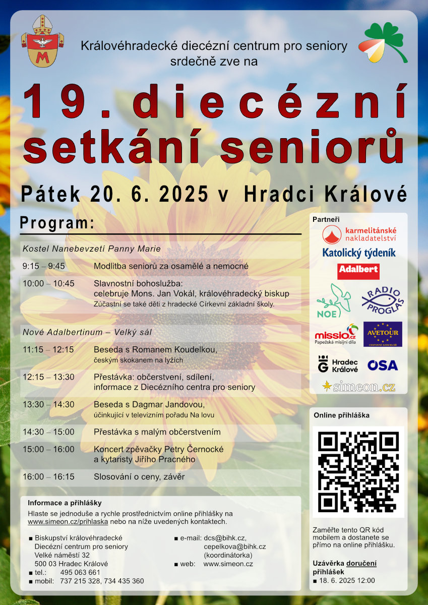 Biskupství královéhradecké je správcem osobních údajů přihlášených účastníků ve smyslu Nařízení o ochraně osobních údajů (GDPR). Osobní údaje výslovně uvedené v této přihlášce zpracovává na základě jejího podání, a to jen v nezbytné míře a rozsahu za účelem realizace diecézního setkání seniorů a benefičního koncertu a dále po nezbytně nutnou dobu z důvodu svých oprávněných zájmů. Přístup k nim mají jen osoby řádně pověřené organizací diecézního setkání a benefičního koncertu. Účastníci mají právo žádat o doplnění, upřesnění či aktualizaci údajů, o informaci, které jejich osobní údaje správce zpracovává, o přístup k nim či jejich kopie. Dojdou-li k závěru, že jsou údaje zpracovávány neoprávněně, mohou požádat o jejich výmaz či omezení zpracování. Ve všech záležitostech osobních údajů se může obracet na pověřence pro ochranu osobních údajů, jehož kontaktní údaje jsou dostupné na www.bihk.cz v sekci kontakt/pověřenec GDPR.